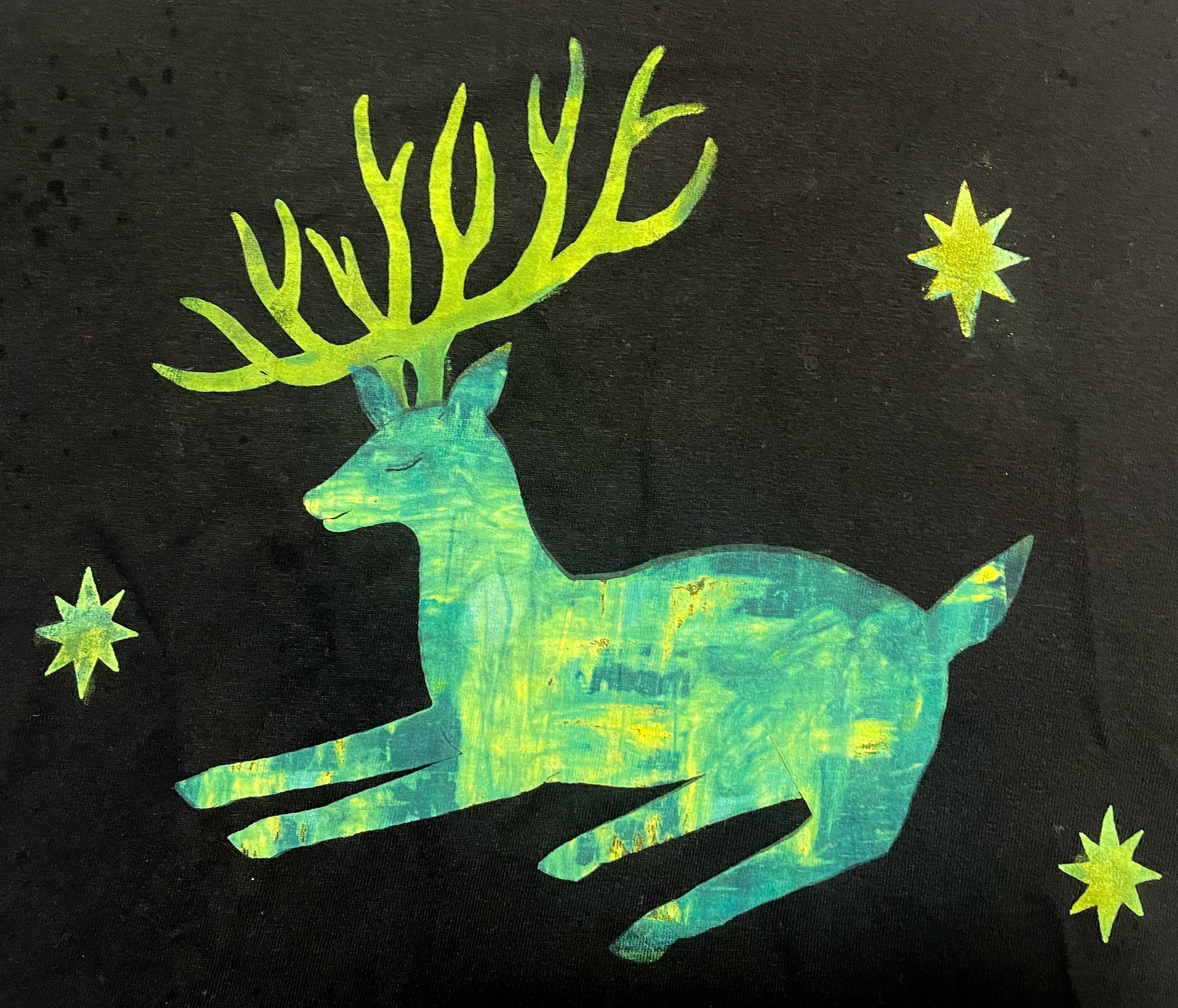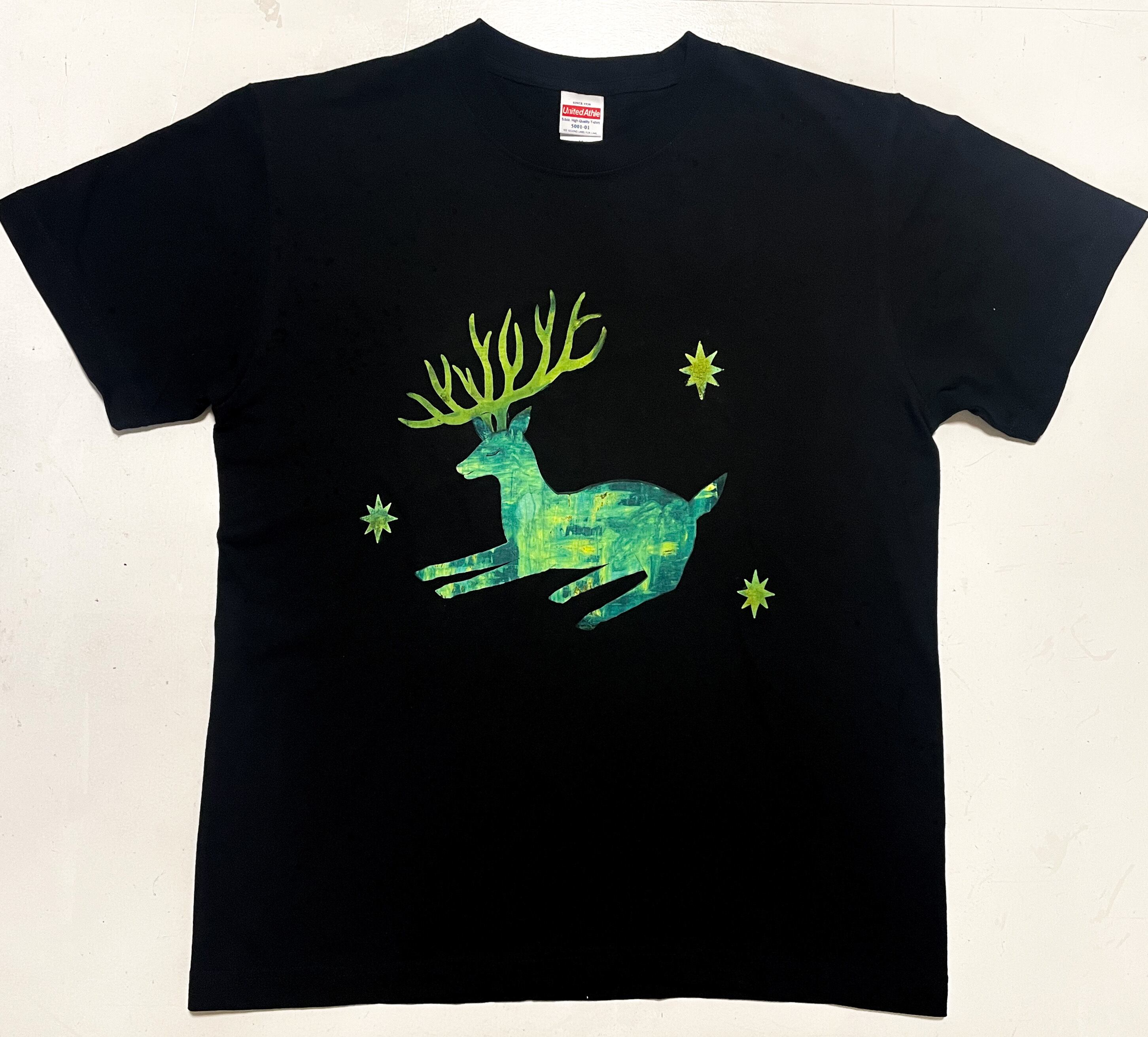 「夜の鹿」(オリジナル手刷りTシャツ)