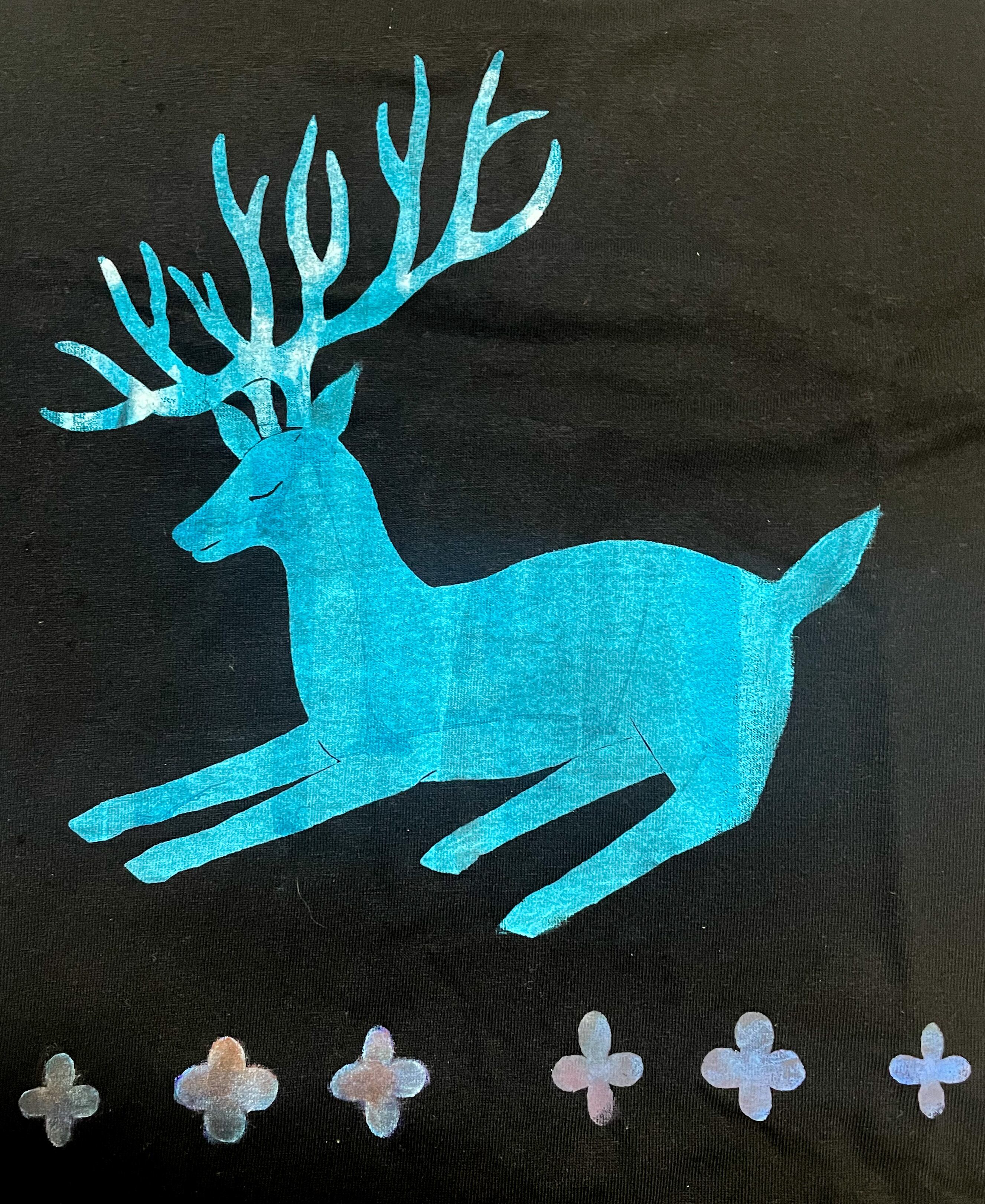 「夜の鹿」(オリジナル手刷りTシャツ)